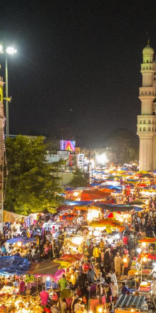 The pulsating heart of Hyderabad where history and street life merge. Narrow lanes lined with stalls selling everything from pearls to spices buzz with vibrant energy. Exploring this district is like stepping back centuries, with each corner revealing tales of royal splendour and everyday hustle.